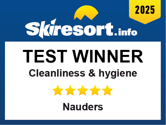 The ski resort Nauders has been distinguished by Skiresort.info, the world’s largest test portal for ski resorts, as the Test Winner 2025 in the category “Cleanliness and hygiene”