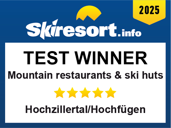 The ski resort Hochzillertal/Hochfügen has been distinguished by Skiresort.info, the world’s largest test portal for ski resorts, as the Test Winner 2025 in the category “Mountain restaurants & ski huts”
