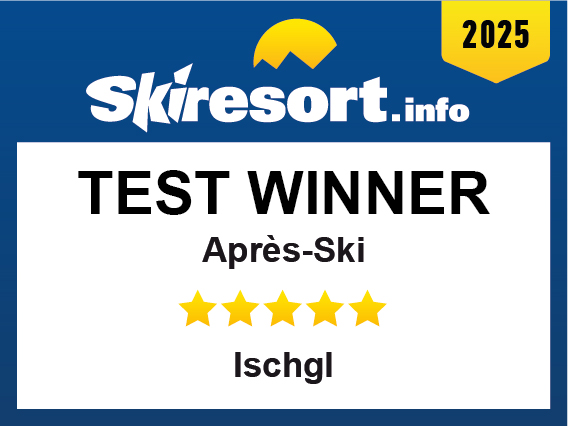 Ischgl has been distinguished by Skiresort.info, the world’s largest test portal for ski resorts, as the Test Winner 2025 in the category “Après-ski”