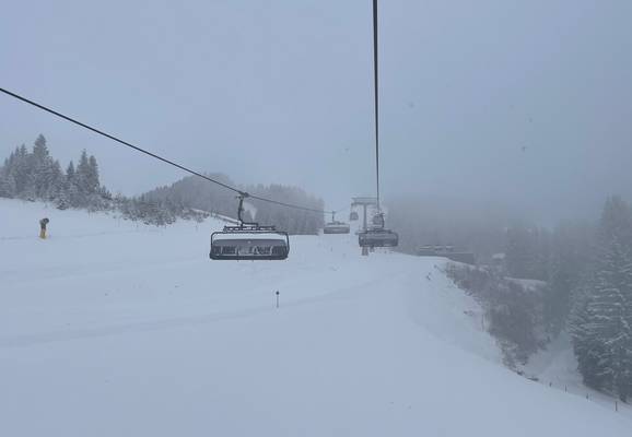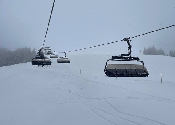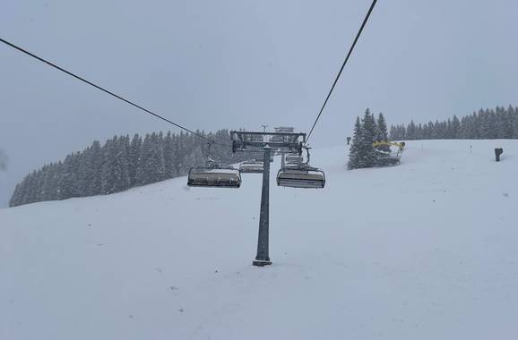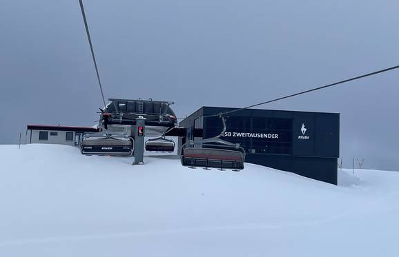 The route began promptly at 8:00 a.m. with about 30 cm of fresh snow in the Skicircus Saalbach Hinterglemm Leogang Fieberbrunn and then continued on to Steinplatte. From there, the group headed to the SkiWelt Wilder Kaiser – Brixental and finally to the KitzSki ski area around Kitzbühel and Kirchberg. At noon, there was even time for a snack at the Holzalm in Brixen im Thale. Thanks to precise planning, quick transfers between locations, and the fresh powder, Kern was able to use a total of 22 different 8-person chairlifts in a single day. As the owner and managing director of the Skiresort website, he has been an enthusiastic fan of these outstanding lift facilities for years.